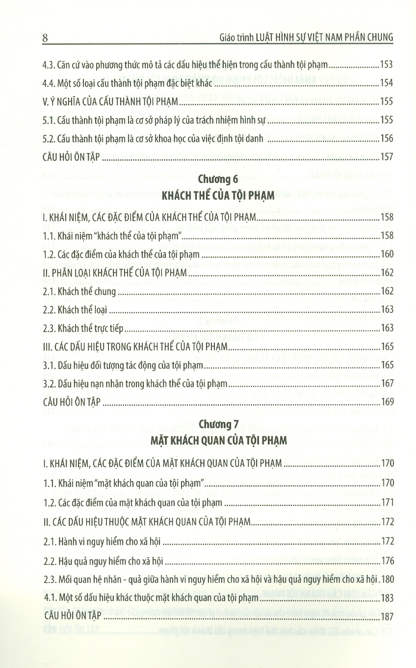 - Về kết cấu: Cuốn sách được sắp xếp theo các vấn đề lôgíc và khoa học. Đặc biệt, trong lần in này, Chương “Các nguyên tắc của Hình sự Việt Nam” được viết gộp chung với Chương “Đạo luật hình sự”; bên cạnh đó có một chương mới được viết thêm về “Trách nhiệm hình sự của pháp nhân thương mại phạm tội” nhằm mục đích tìm hiểu, nghiên cứu về cơ sở lý luận và những căn cứ pháp lý để truy cứu trách nhiệm hình sự pháp nhân thương mại phạm tội do đây là vấn đề lần đầu tiên được quy định trong Bộ luật Hình sự Việt Nam.
