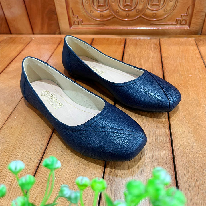 Mua tại Tiktok- Tên sản phẩm:Giày búp bê trơn da bò mũi vuông Trường Hải có 2 màu xanh ,đen GBB115