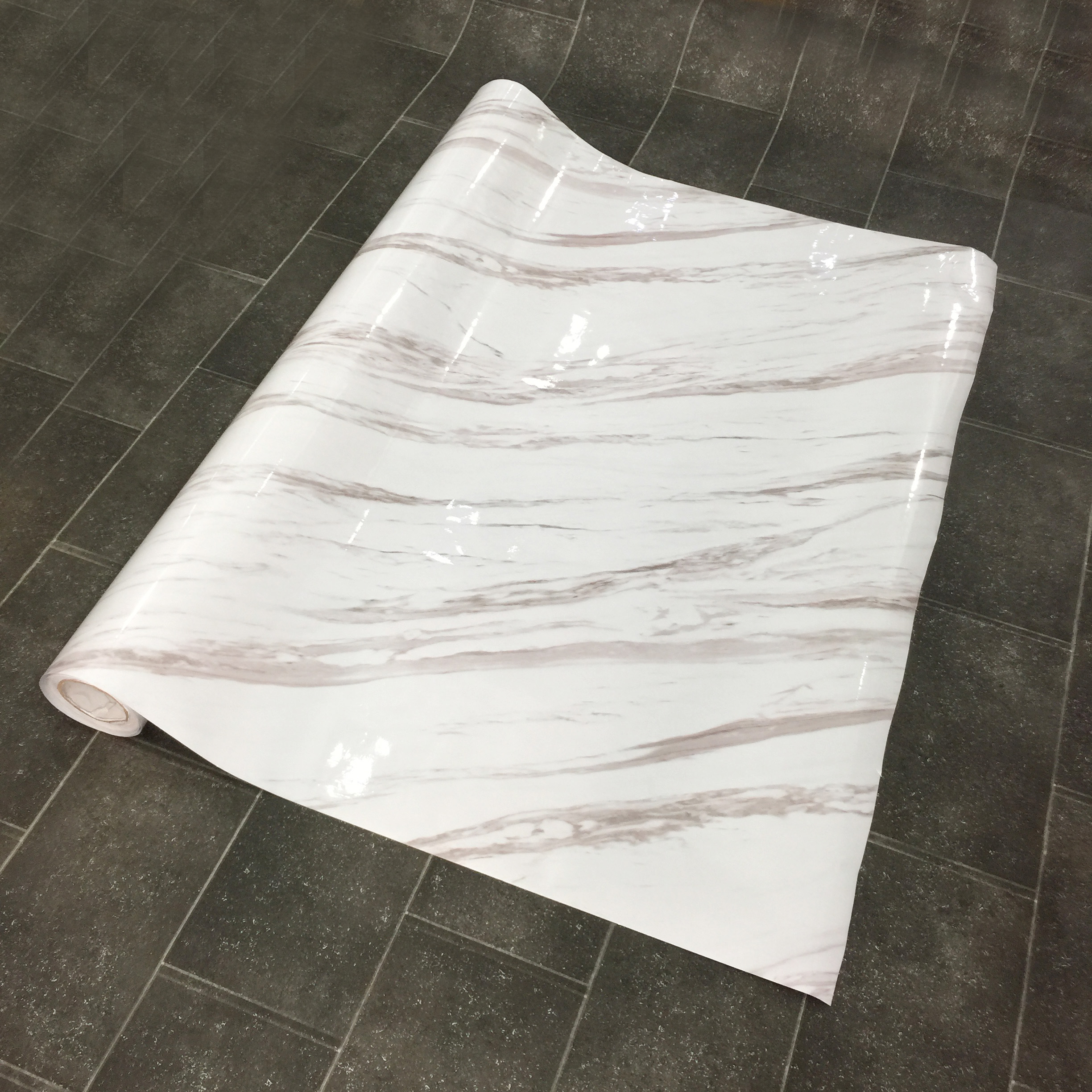Mẫu giấy dán tường giả đá hoa cương màu trắng này có sẵn keo rồi, khách chỉ cần lột ra dán thôi.