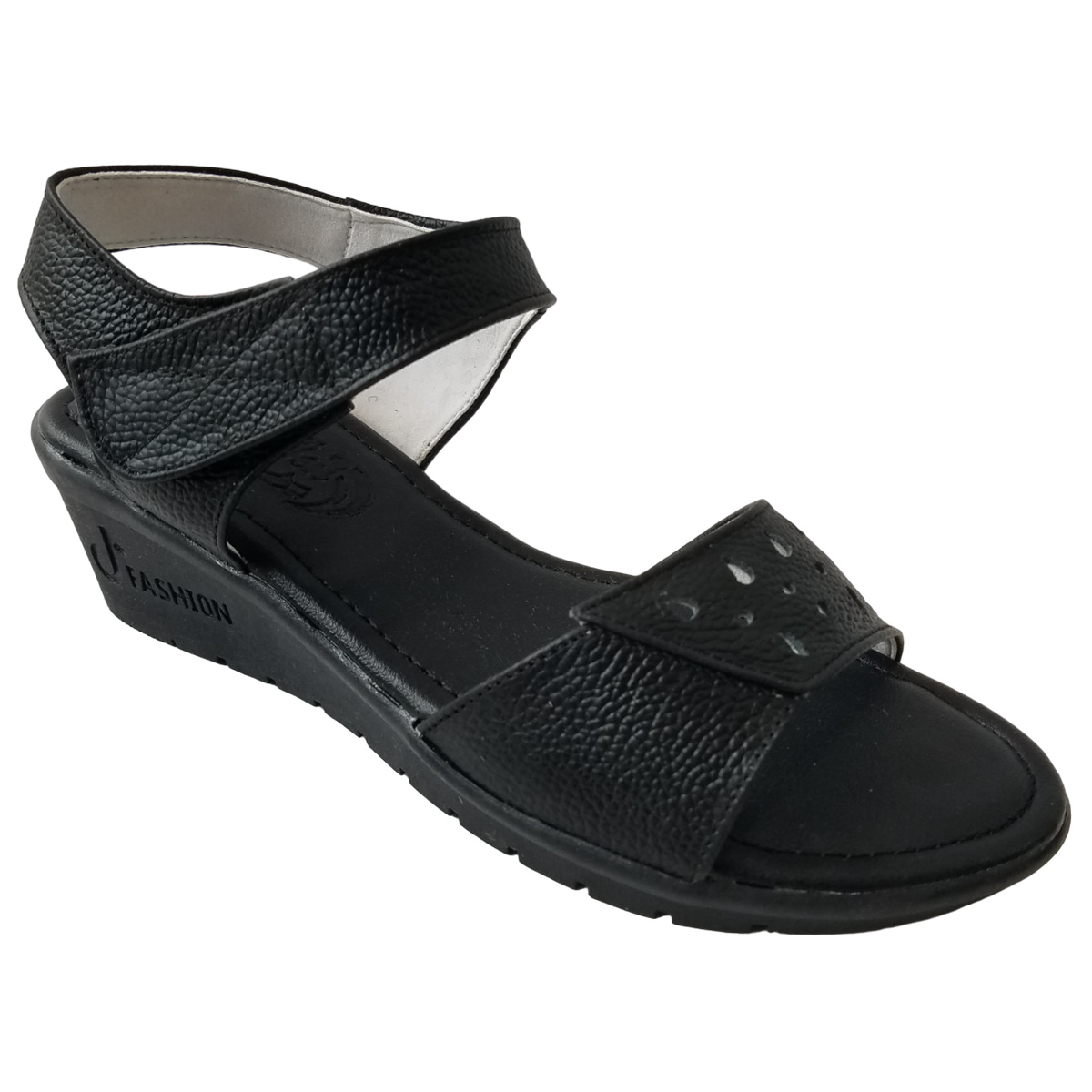 Dép xăng đan nữ đế vuông cao 5cm da bò thật