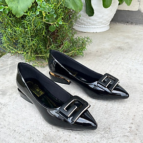 Giày cao gót da bóng đen 3cm Trường Hải