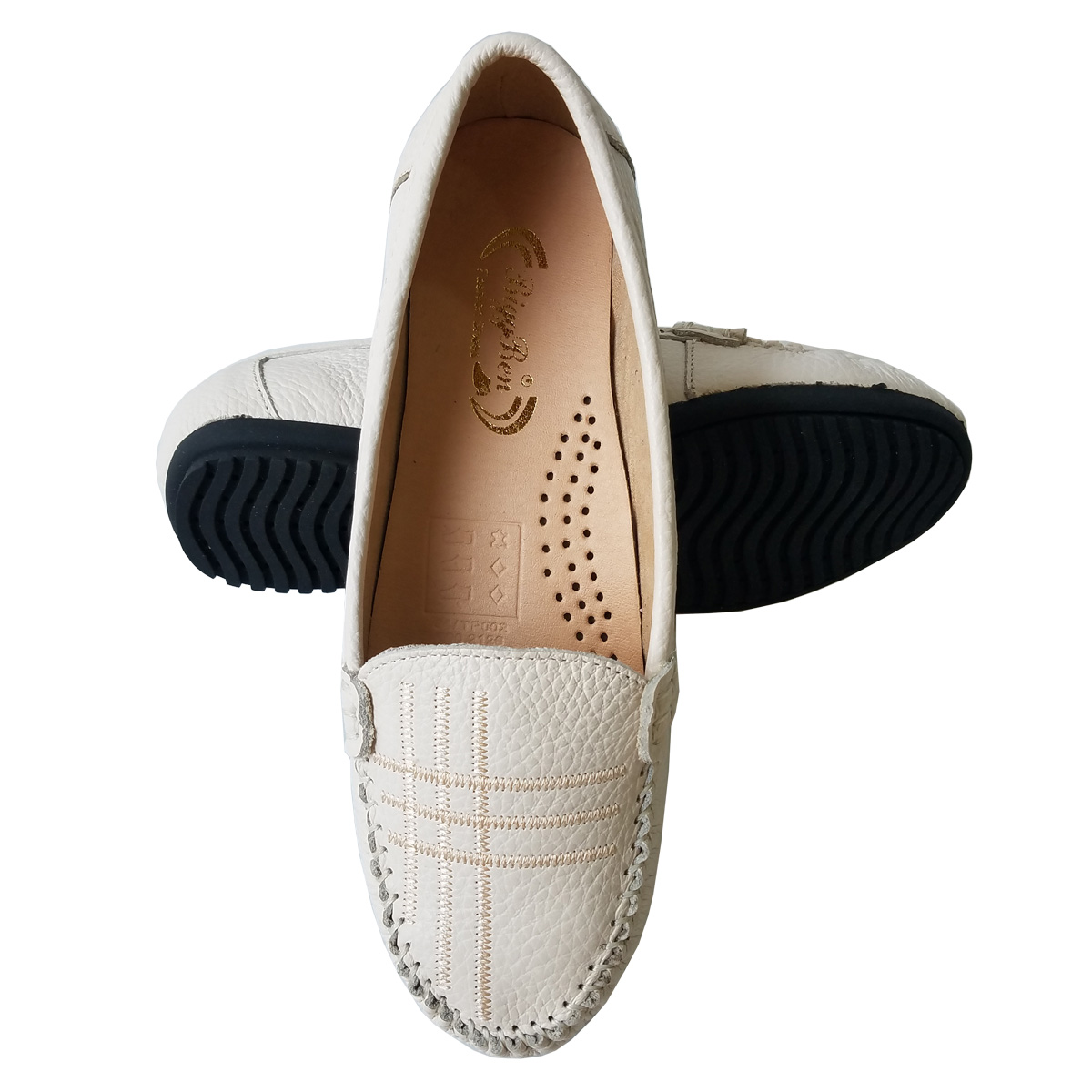 Giày Đế Bằng Giày Lười Nữ Da Bò Thật Siêu Mềm Sang Trọng Evelynv GB0916 (Kem)