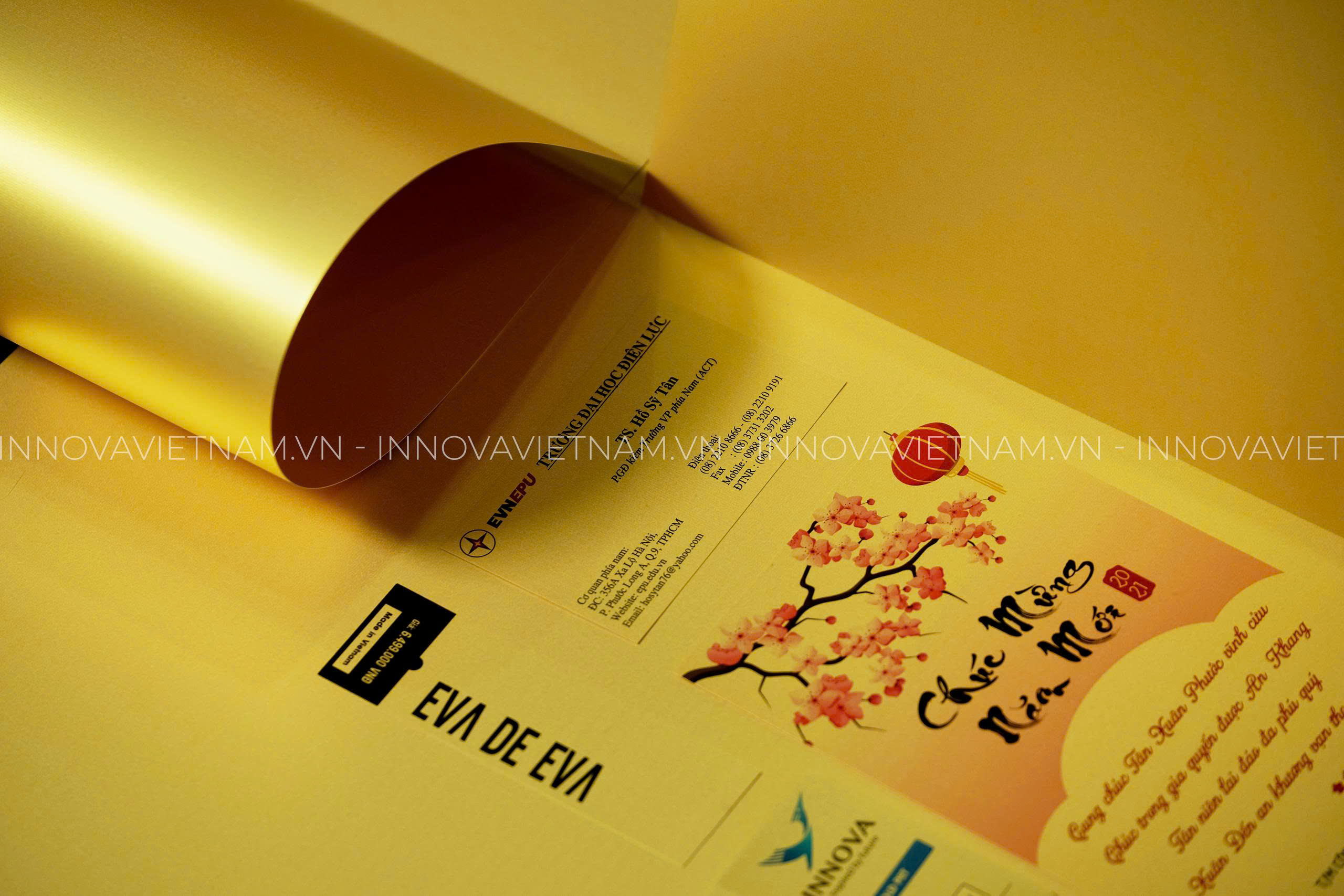 – Trên sản phẩm in bạn có thể dễ dàng nhìn thấy nền lấp lánh một dãy nhũ vàng nổi bật, sang trọng và thể hiện đẳng cấp riêng.