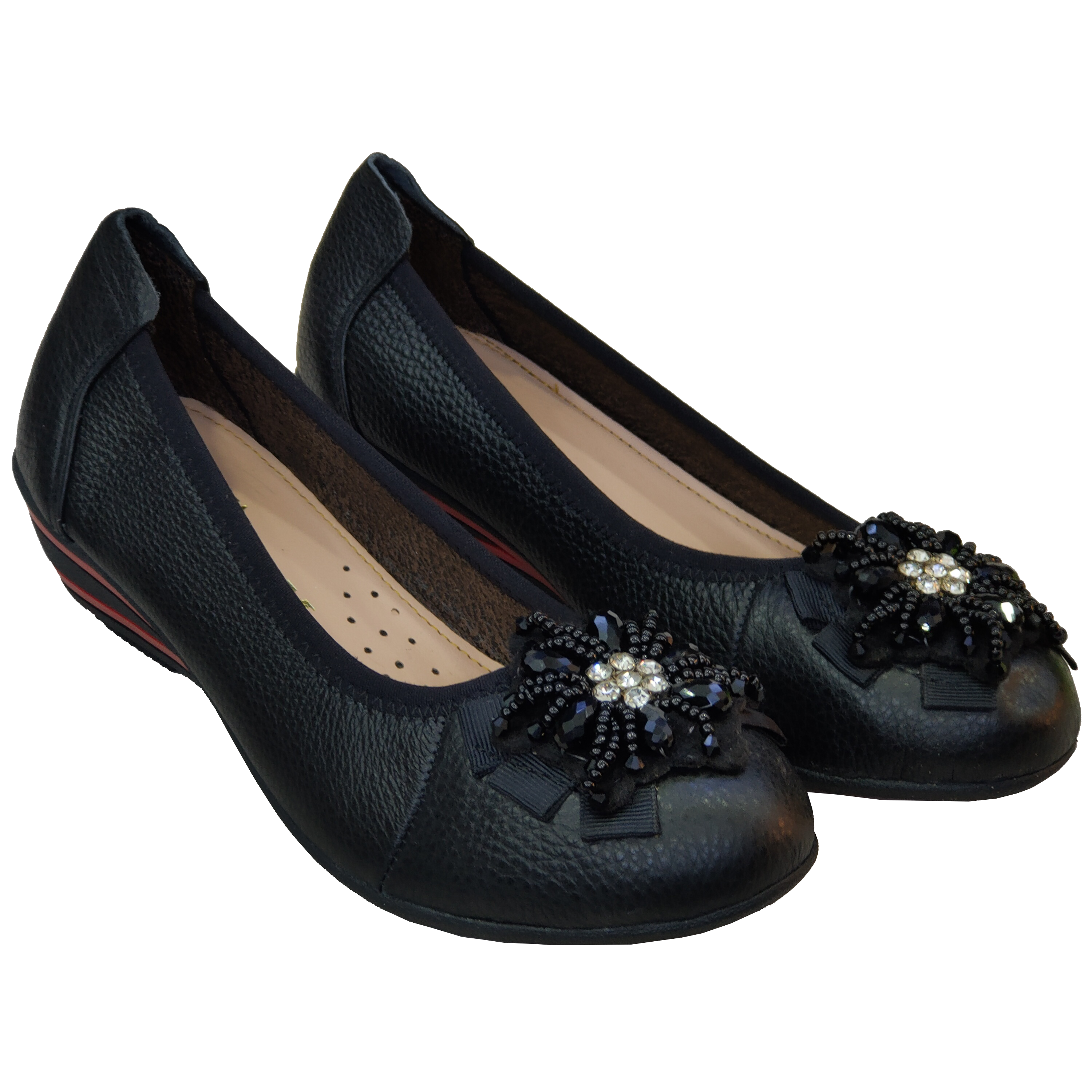 Giày đế xuồng 3cm đính nơ đen Trường Hải da bò thật