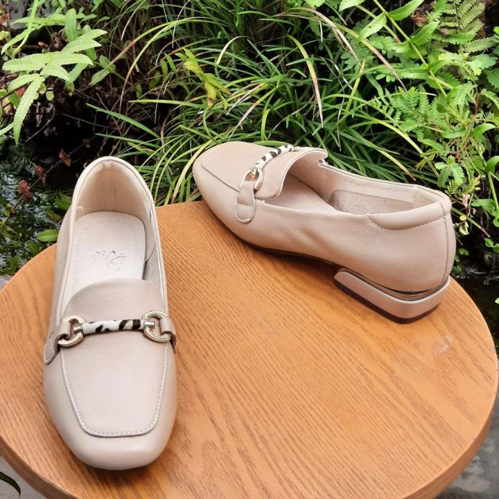 - Tên sản phẩm:Giày lười nữ da bò đế bệt khóa ngang Trường Hải nhiều màu GM123V - Chất liệu: giày được làm bằng da bò thật mềm mại tuyệt đối không bong tróc hay