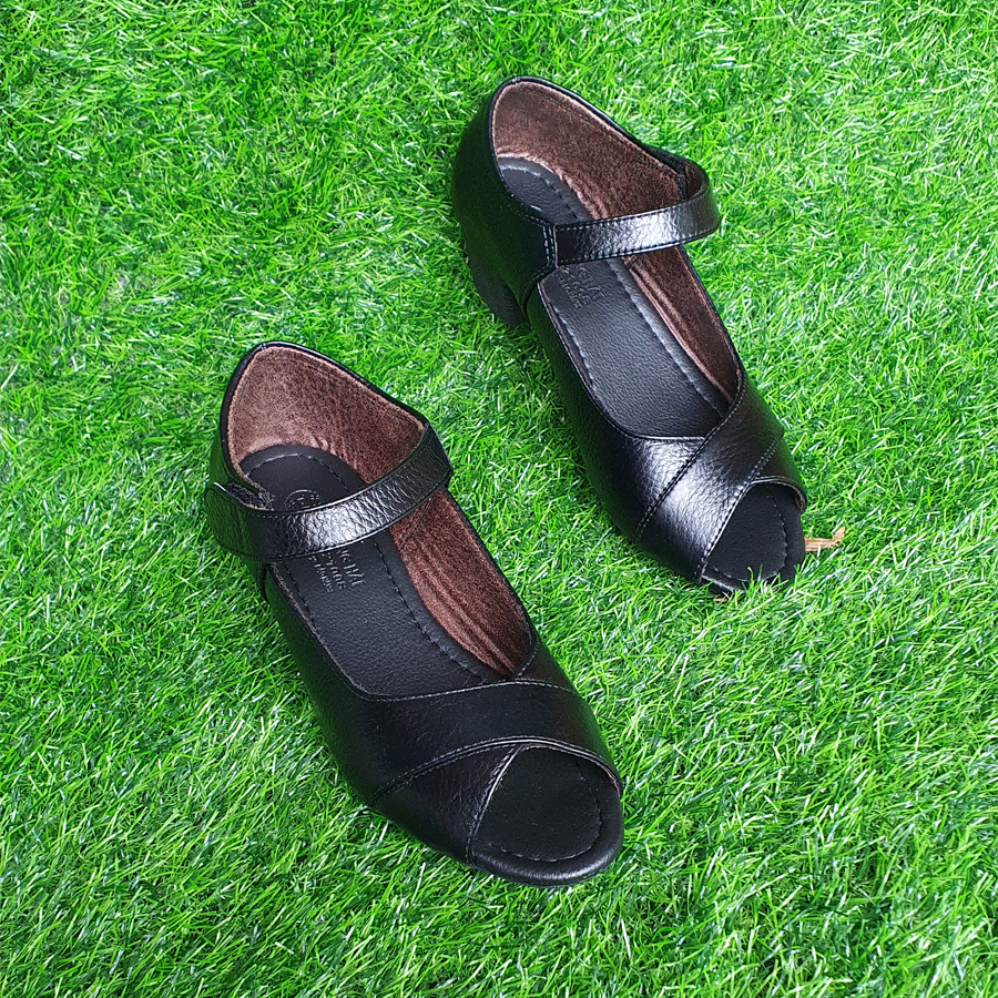 ✨Giày nữ gót vuông 5cm hở mũi Trường Hải da bò màu đen CG145