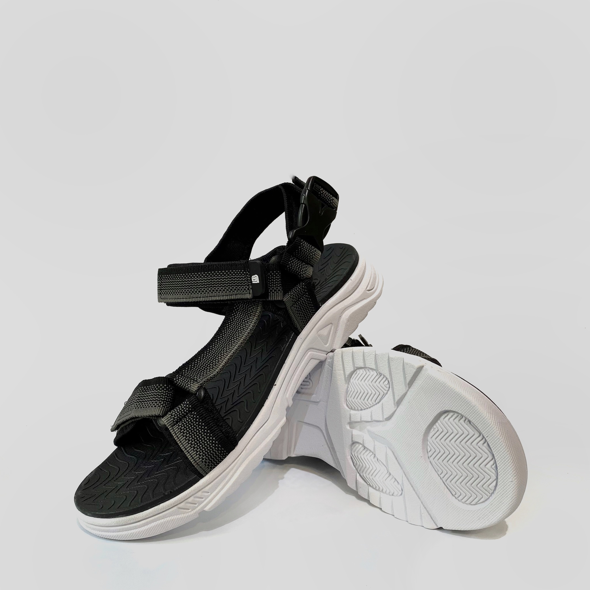 ✨Giày Sandal Nam The Bily Quai Chéo - Đế Trắng Lót Đen Màu Xám Thổ Cẩm BLDTMD01
