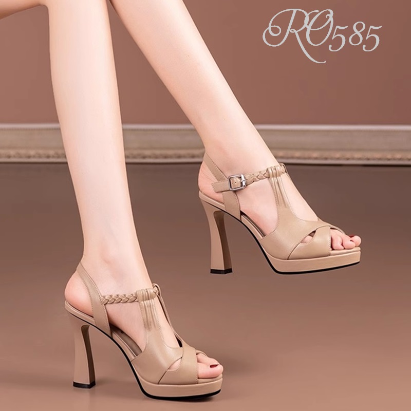 ✨Giày sandal nữ đẹp cao gót 9 phân hàng hiệu rosata màu nâu hở mũi ro585