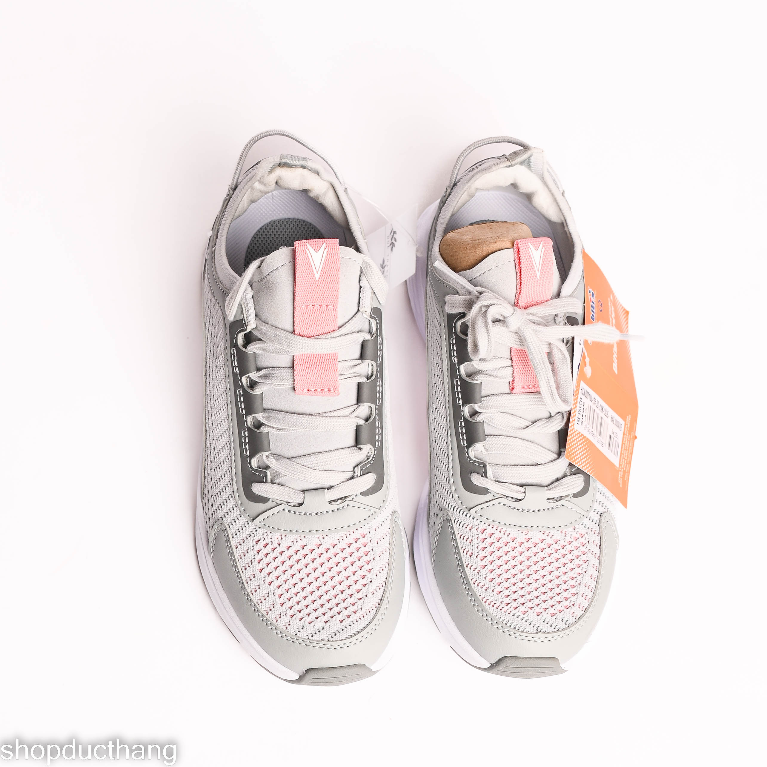 Đế giày - lựa chọn chất liệu Phylon làm nên đế giày thể thao cho các chị em. Vì tính chất nổi bật của vật liệu này là trọng lượng siêu nhẹ (nặng chỉ 300g/chiếc) và độ đàn hồi cao. Nhờ đó, phần lớn khách hàng sử dụng sản phẩm ngay từ lần đầu tiên đều có cảm giác đôi chân “nhẹ như bay”, bước đi thoải mái và thỏa thích vận động ở mọi tư thế theo cách riêng mà không lo đau mỏi chân. - Mặt đế thiết kế thêm những rãnh chống trượt, bố trí dày đặc nhằm tăng độ ma sát. Qua đó giúp người mang vận động thoải mái, bước đi vững chắc và bảo đảm an toàn tối đa, nhất là khi di chuyển trên những địa hình trơn nhẵn hoặc thời tiết ẩm ướt. Thân giày - Thân giày áp dụng công nghệ đan 2 sợi độc đáo. Nhờ vậy, sản phẩm vô cùng nhẹ và thoáng, mang lại cảm giác thoải mái nhất có thể cho người sử dụng. Không những vậy, công nghệ đan 2 sợi còn bảo đảm độ bền chặt của từng chi tiết như cổ giày, quai giày, dây giày… giữ đúng form dáng lâu dài, ít biến dạng hoặc giãn sau một thời gian sử dụng. - Bên cạnh đó, thiết kế thân giày được cải tiến mạnh mẽ bằng chất liệu vải canva, bảo đảm cảm giác thoải mái nhất có thể và hạn chế nóng bức, bí bách nếu phải mang giày trong thời gian dài. -