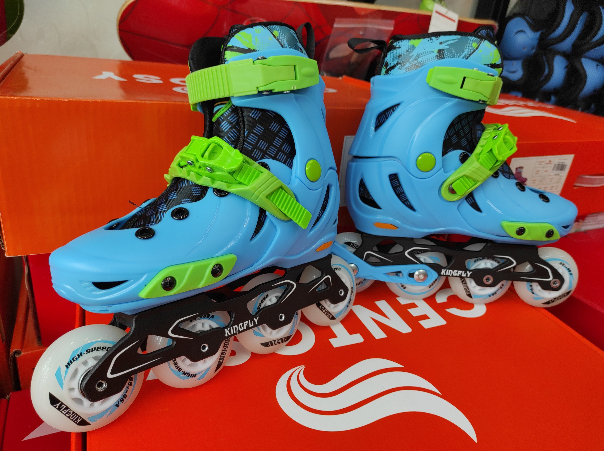 - Giày Trượt Patin Longfeng 906 Đại Nam Sport LF906 được thiết kế cải tiến với 2 bánh dọc trước, 2 bánh song song ở sau giúp cho bé trượt dễ dàng hơn. - Bánh xe