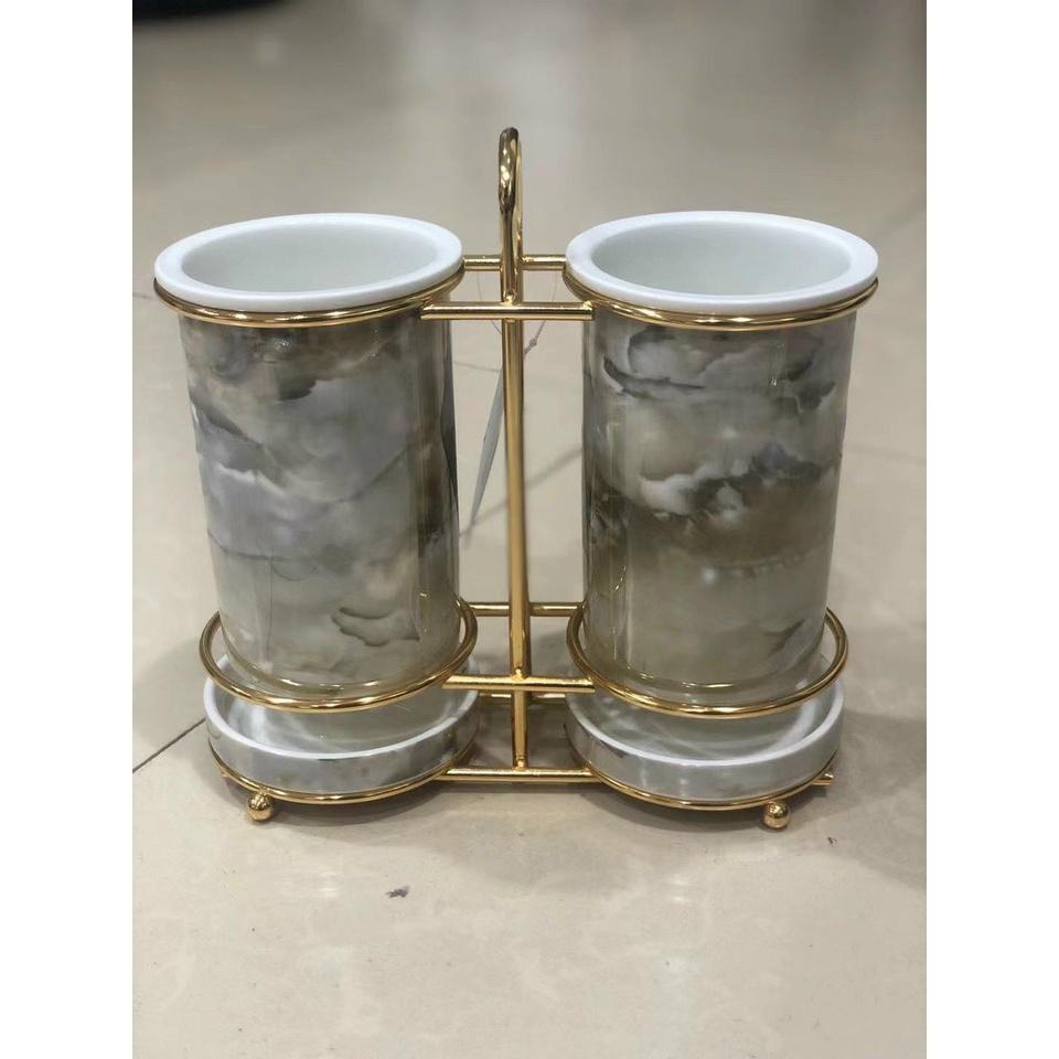 ✨GIỎ SỨ ĐỰNG ỐNG ĐŨA VÂN ĐÁ KHUNG KIM LOẠI MẠ VÀNG SANG TRỌNG