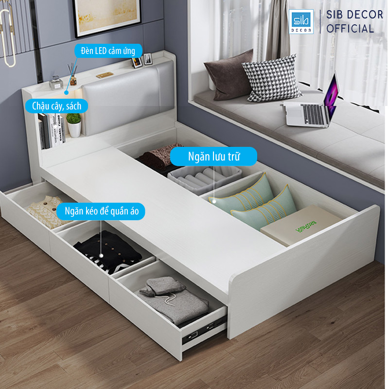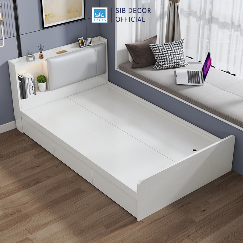 Sản phẩm chỉ bao gồm 1 giường đơn, không kèm các phụ kiện khác. - Chất liệu gỗ MDF loại 1 cao cấp đạt tiêu chuẩn E1 nhập khẩu Singapore được phủ Melamine chống thấm,