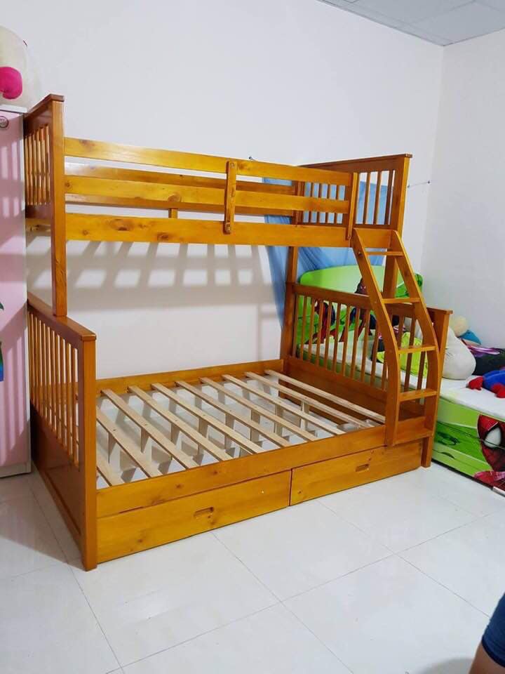 Giường gỗ 2 tầng 1m6 là một trong những chiếc giường tầng hiện đại đạt tiêu chuẩn quốc tế để xuất khẩu. Với mẫu mã sang trọng, độ bền cao cùng với sự tinh tế giường tầng gỗ thông 1m6 giúp bạn tiết kiệm được tối đa không gian trong gia đình. Với thiết kế chuyên biệt khi người lớn ngồi vào giường tầng 1 sẽ không chạm đầu vào tầng trên. Đây là đặc điểm khác biệt so với các dòng sản phẩm giường tầng khác.