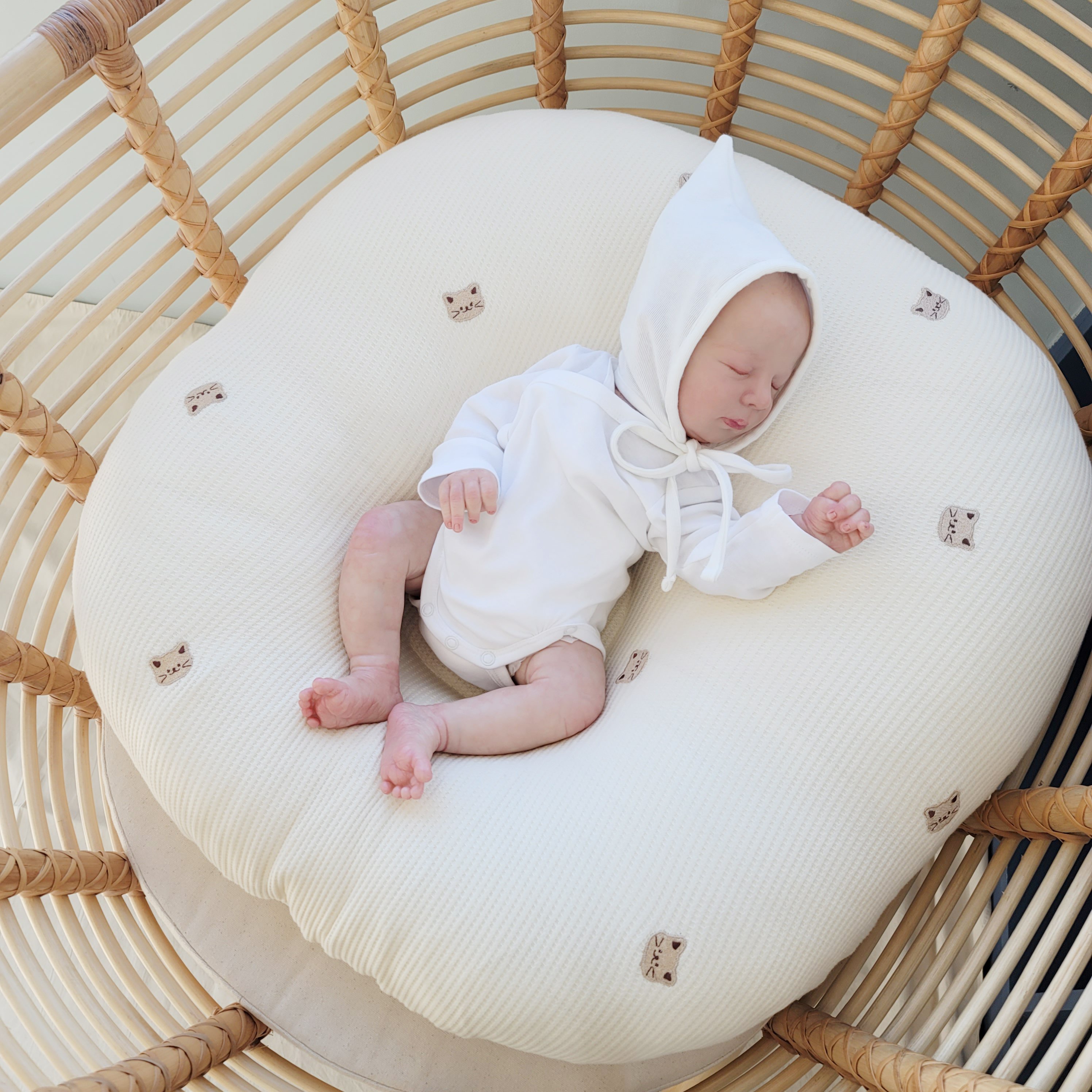 Gối chống trào ngược Rototo Bebe phiên bản giới hạn vỏ Airmesh Waffle thêu hoạ tiết mèo được làm từ chất liệu cao cấp, đảm bảo an toàn đối với trẻ em. Sản phẩm mang lại cho bé sự thoải mái, dịu êm và hạn chế trào ngược, trớ sữa hiệu quả.