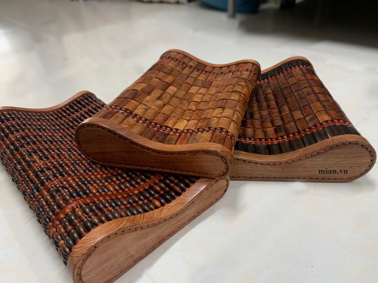 Hạt gỗ rắn chắc , có mùi thơm nhẹ , những hạt gỗ chọn và nhặt tỉ mỉ trong quá trình đan gối .