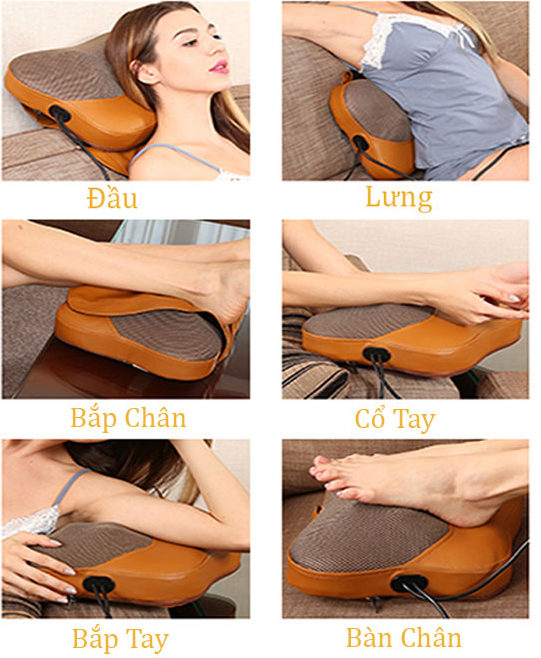 HƯỚNG DẪN SỬ DỤNG: - Gối có pin: sạc đầy rồi dùng. - Dung lượng pin : 600mA - Thời gian sử dụng 1 lần: Kéo dài 15 phút. - Thời gian sạc: Chế