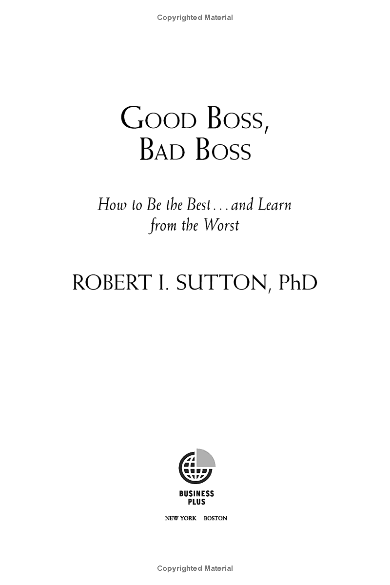 Good Boss, Bad Boss was inspired by the thousands of , calls and conversations that Robert Sutton received after publishing his bestseller The No Asshole Rule - he found that most of the stories and cries for help he received revolved around one central figure in every workplace: THE BOSS.