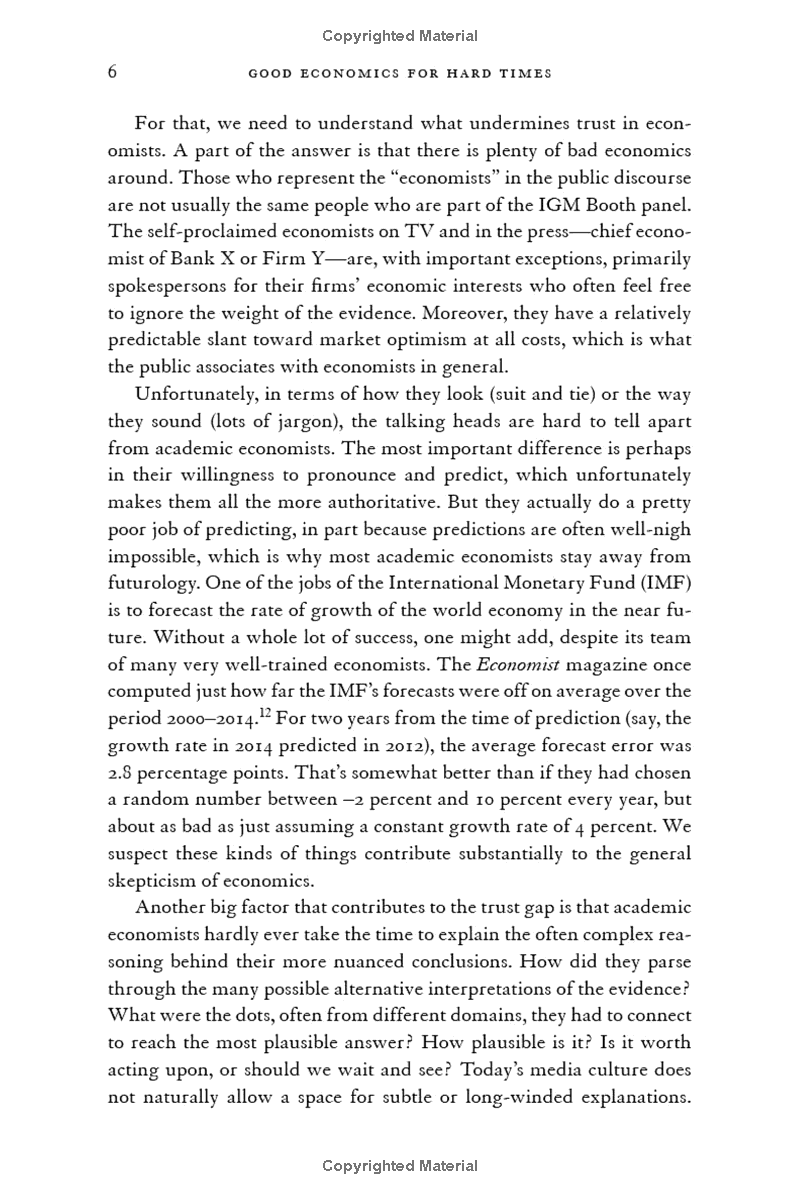 In this revolutionary book, renowned MIT economists Abhijit V. Banerjee and Esther Duflo take on this challenge, building on cutting-edge research in economics explained with lucidity and grace. Original, provocative, and urgent, Good Economics for Hard Times makes a persuasive case for an intelligent interventionism and a society built on compassion and respect. It is an extraordinary achievement, one that shines a light to help us appreciate and understand our precariously balanced world.
