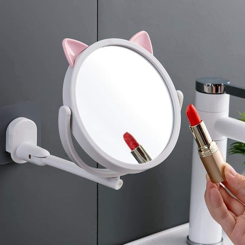 Gương Tròn Tai Mèo Xoay 360 Độ Có Giá Treo Tường Tiện Lợi - 10507
