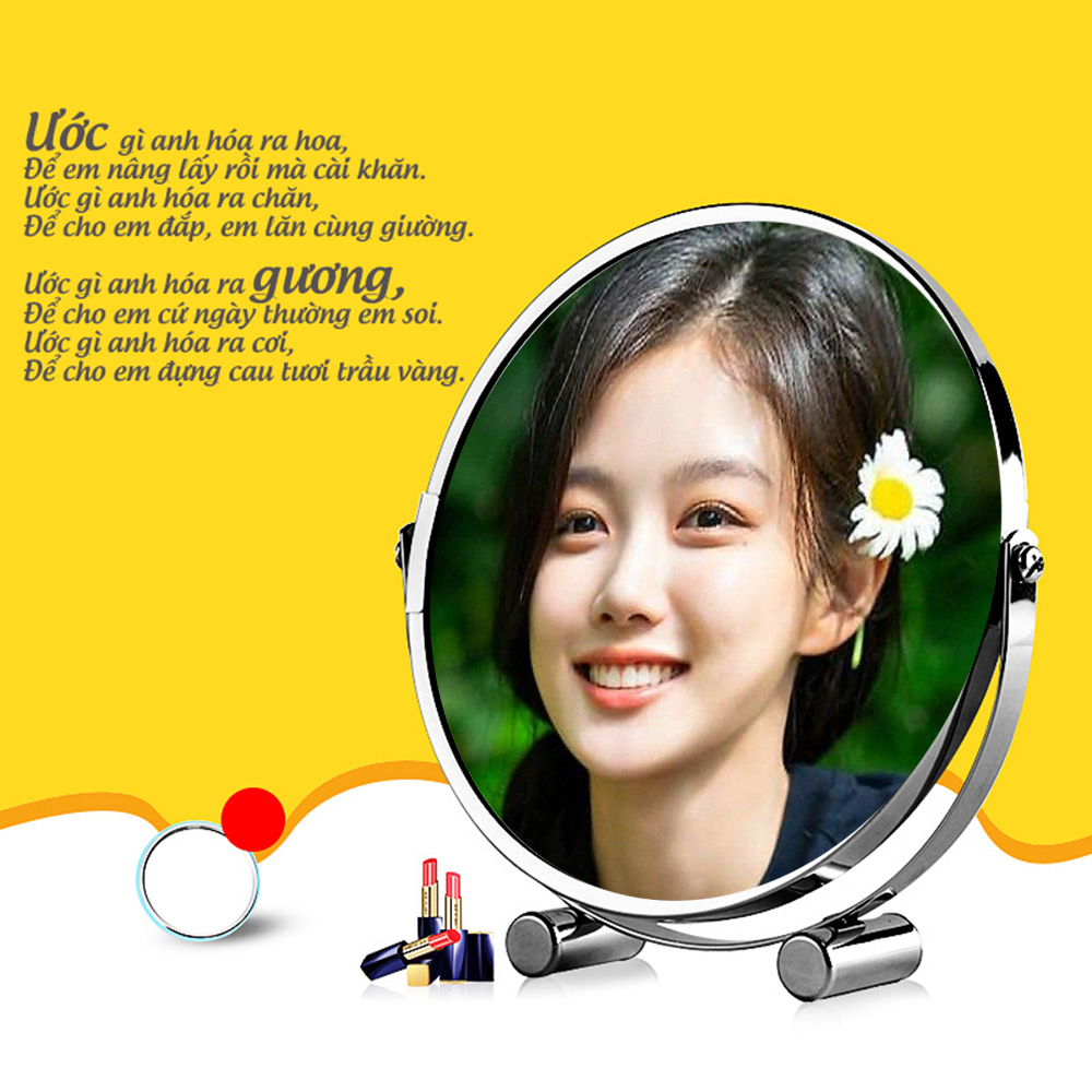 Gương trang điểm phóng đại 3 lần, xoay 360 độ, 2 mặt siêu nét, để bàn, Thép không gỉ, Size 18cm, 20cm, Minh House G31 Mô tả: Rất là khó chịu khi trang điểm, tỉa