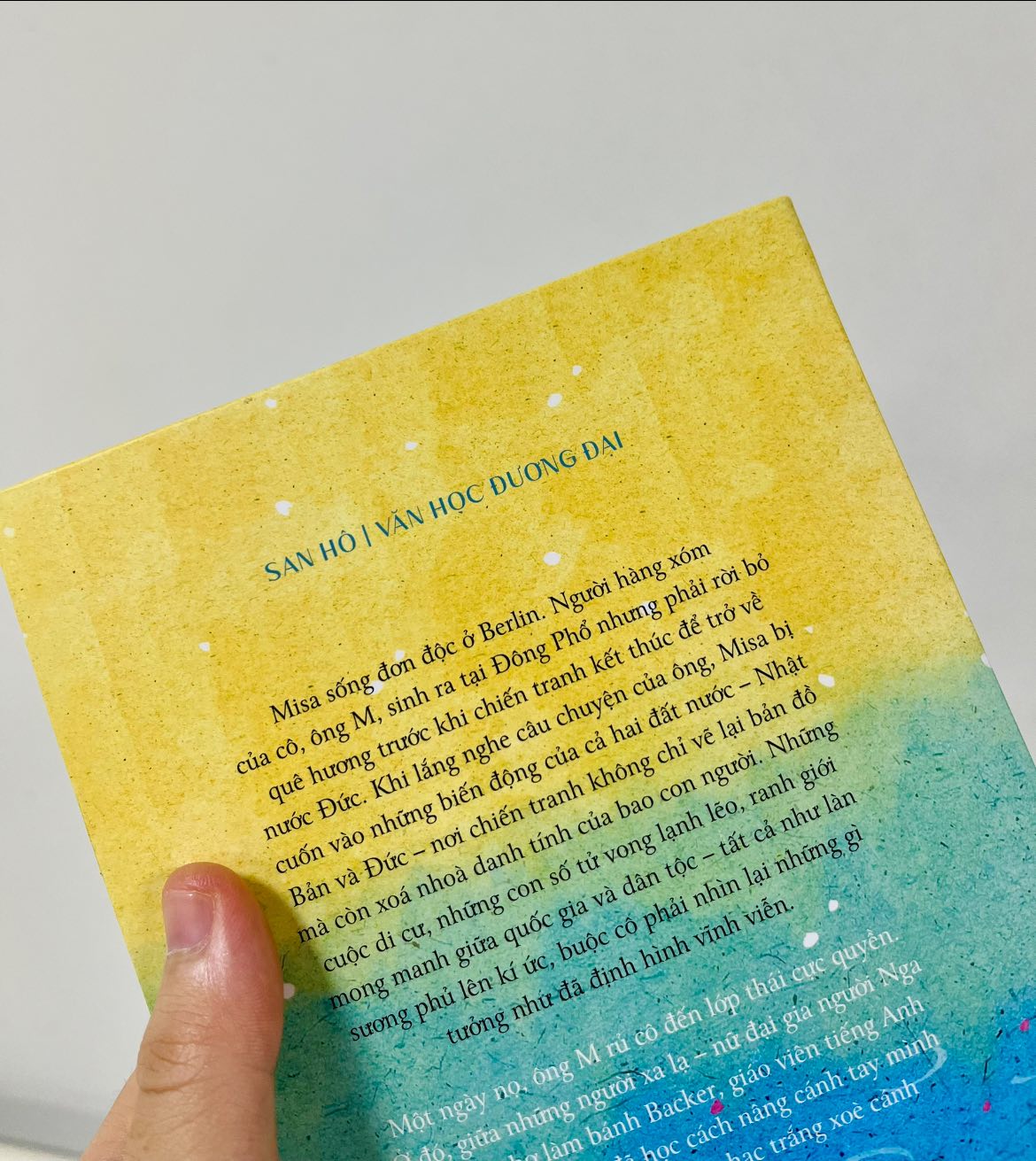 Misa sống đơn độc ở Berlin. Người hàng xóm của cô, ông M, sinh ra tại Đông Phổ nhưng phải rời bỏ quê hương trước khi chiến tranh kết thúc để trở về nước Đức. Khi lắng nghe câu chuyện của ông, Misa bị cuốn vào những biến động của cả hai đất nước – Nhật Bản và Đức – nơi chiến tranh không chỉ vẽ lại bản đồ mà còn xoá nhoà danh tính của bao con người. Những cuộc di cư, những con số tử vong lạnh lẽo, ranh giới mong manh giữa quốc gia và dân tộc – tất cả như làn sương phủ lên kí ức, buộc cô phải nhìn lại những gì tưởng như đã định hình vĩnh viễn.