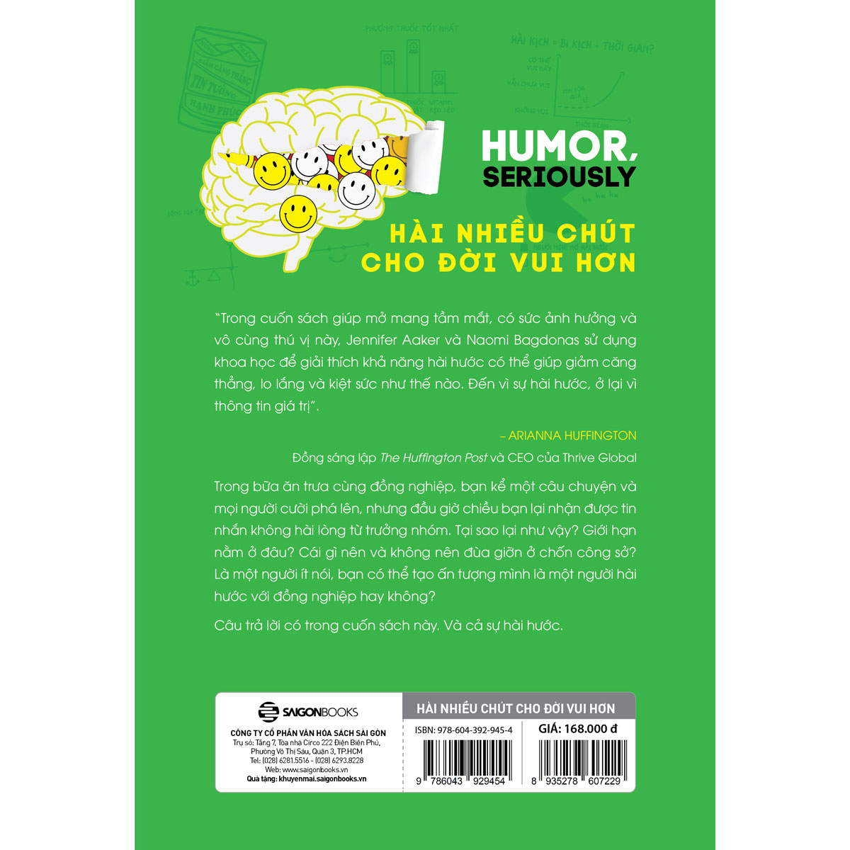 Hơn nữa, cuốn sách HUMOR, SERIOUSLY: Why Humor Is a Secret Weapon in Business and Life này cũng đính chính, bóc tách lợi ích của óc hài hước đối với sự nghiệp, công ty và cuộc sống chúng ta bằng cách sử dụng cách thức quyến rũ nhất trong giới học thuật: khoa học hành vi (cùng với rất nhiều sự giúp đỡ từ các diễn viên hài và lãnh đạo của doanh nghiệp).