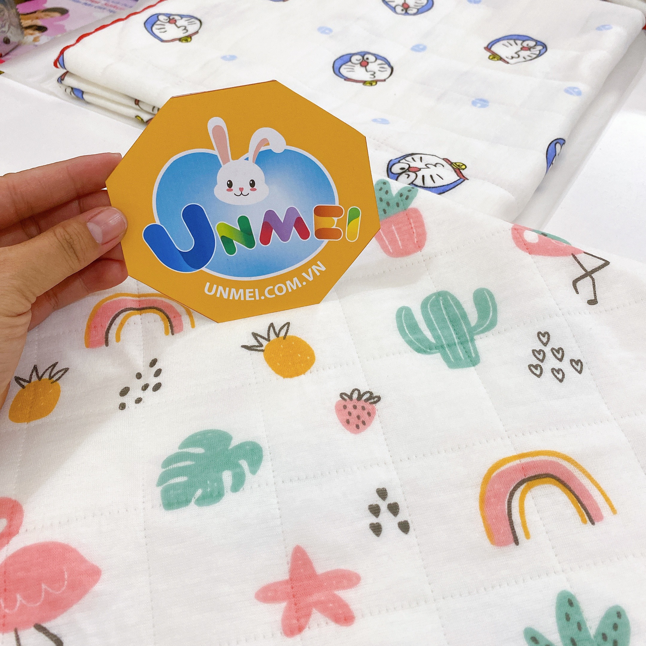 - Khăn có chất lượng tốt là khăn khi sờ bằng tay. Cảm nhận được bề mặt mịn màng, mềm mại. Sau khi sử dụng không bị khô cứng, thô ráp, không gây trầy xước và tổn hại đến làn da của bé Unmei Trading cam kết: