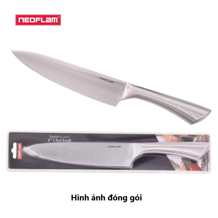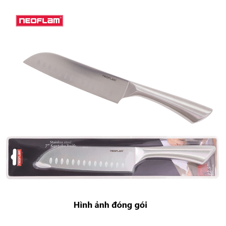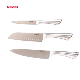 Bộ dao Neoflam gồm 3 dao: Dao chef, dao santoku 7' và dao gọt. Dao được làm từ thép chống gỉ hàm lượng các bon cao, sắc bén và sạch bóng, dễ dàng chế biến