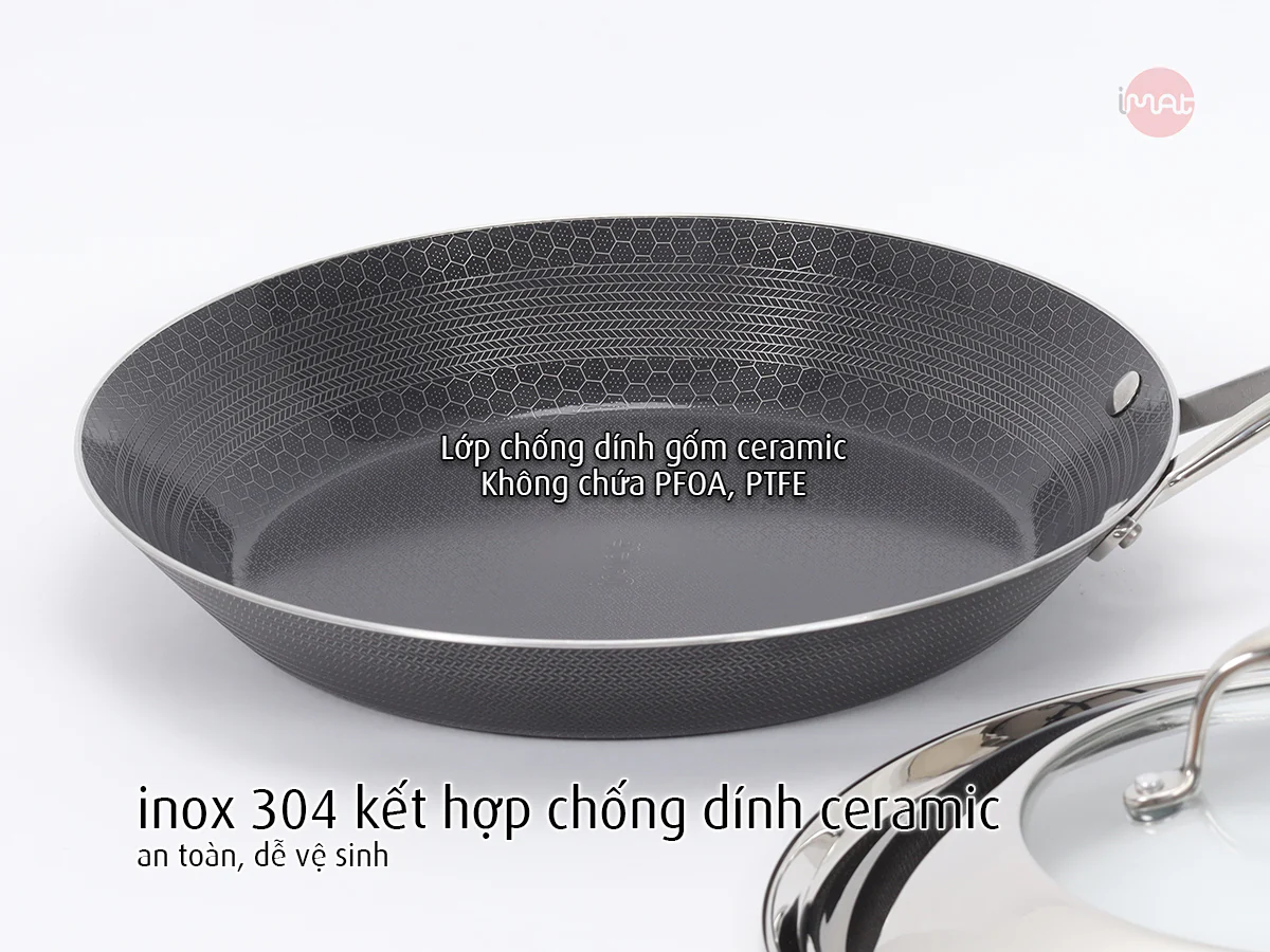 ✨[Hàng chính hãng]Chảo inox iMat Hybrid Blackcube Pealla 28cm kèm vung,chống dính gốm Ceramic đen mới