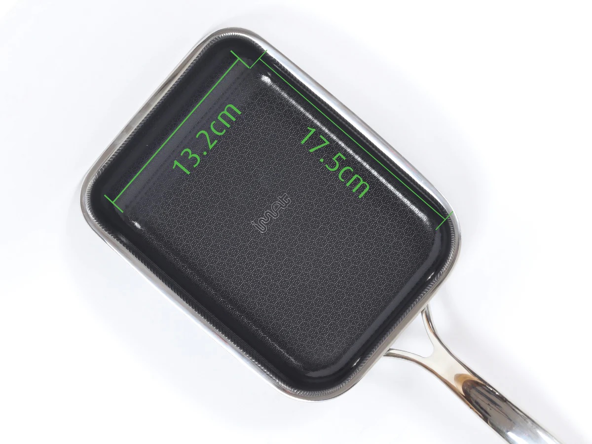 Chảo iMat Hybrid 15cm tay cầm dài, để chế biến món trứng cuộn Nhật Bản (Tamagoyaki) bằng cách chiên từng lớp trứng và cuộn thành khối vuông. Thiết kế chữ nhật nhỏ gọn và cấu trúc ba lớp cao cấp giúp chảo dẫn nhiệt tốt, tạo ra món trứng cuộn thơm ngon hơn. Ngoài ra, chảo còn phù hợp để chiên rán lượng thực phẩm nhỏ như thịt, cá, rau củ. lớp chống dính ceramic kết hợp công nghệ Blackcube giúp tăng cường khả năng chống dính và bền bỉ, không chứa PFOA và PTFE, đảm bảo an toàn sức khỏe