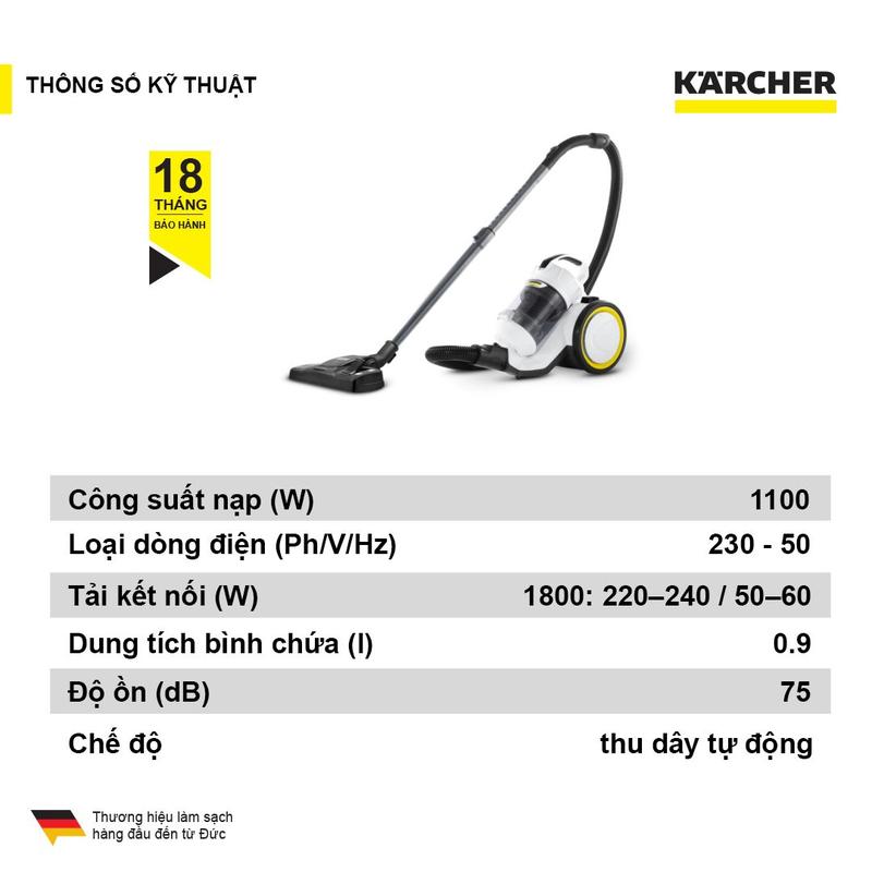 ✨(Hàng chính hãng) Máy hút bụi khô không dùng túi lọc bụi Karcher VC 3 Plus công suất 1100w màu trắng - bảo hành 18 tháng