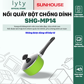 - Nồi Quấy Bột Chống Dính Sunhouse SHG MP 14 dùng để nấu cháo bột và thức ăn cho trẻ, được làm bằng hợp kim nhôm quốc tế A3003, bên trong phủ lớp chống dính.