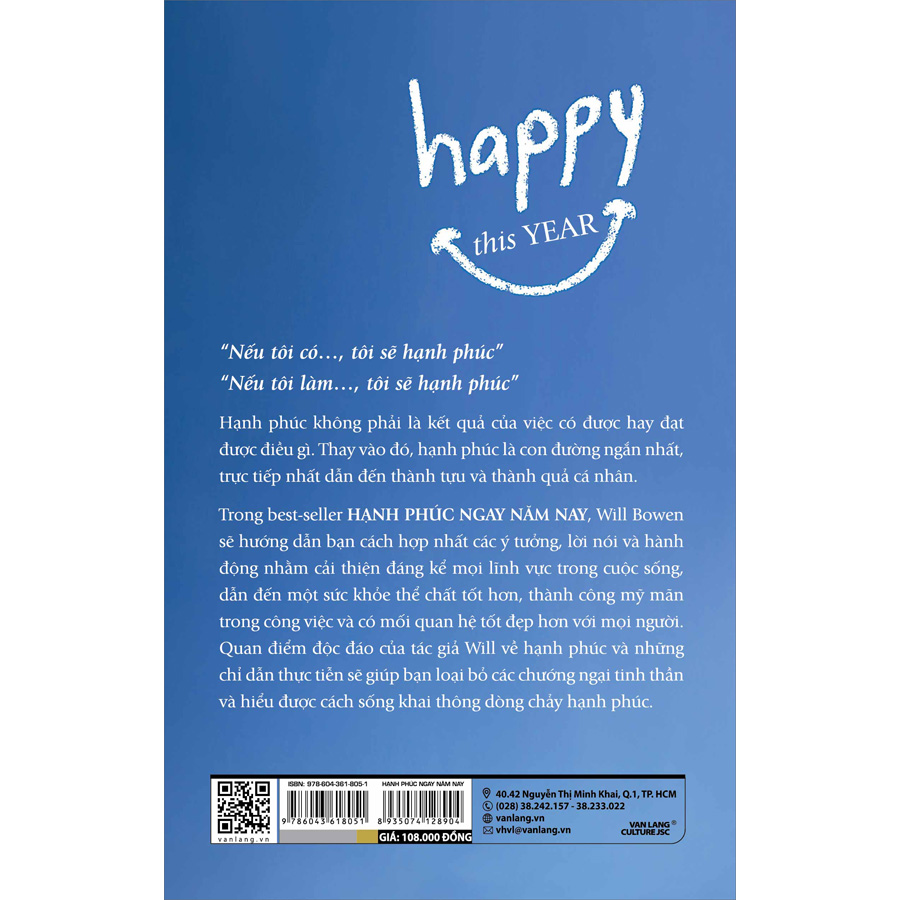 Mua tại Tiktok“Nếu tôi có…, tôi sẽ hạnh phúc” “Nếu tôi làm…, tôi sẽ hạnh phúc” Hạnh phúc không phải là kết quả của việc có được hay đạt được điều gì. Thay vào đó, hạnh phúc là con đường ngắn nhất, trực tiếp nhất dẫn đến thành tựu và thành quả cá nhân. Trong best-seller Hạnh phúc ngay năm nay, Will Bowen sẽ hướng dẫn bạn cách hợp nhất các ý tưởng, lời nói và hành động nhằm cải thiện đáng kể mọi lĩnh vực trong cuộc sống, dẫn đến một sức khỏe thể chất tốt hơn, thành công mỹ mãn trong công việc và có mối quan hệ tốt đẹp hơn với mọi người. Quan điểm độc đáo của tác giả Will về hạnh phúc và những chỉ dẫn thực tiễn sẽ giúp bạn loại bỏ các chướng ngại tinh thần và hiểu được cách sống khai thông dòng chảy hạnh phúc.