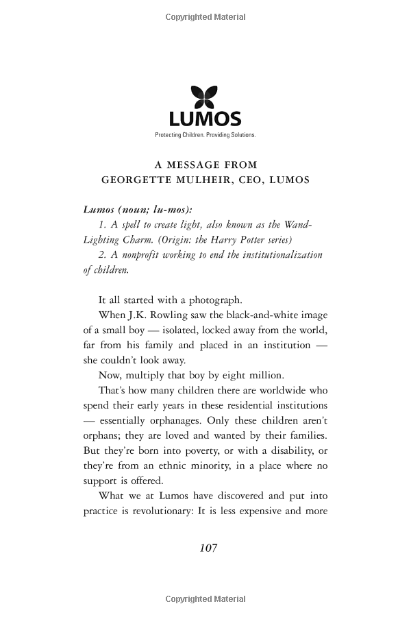 This purchase also represents another very important form of giving: From every sale of this book, Scholastic will give its net proceeds to Lumos, an international non-profit organization founded by J.K.