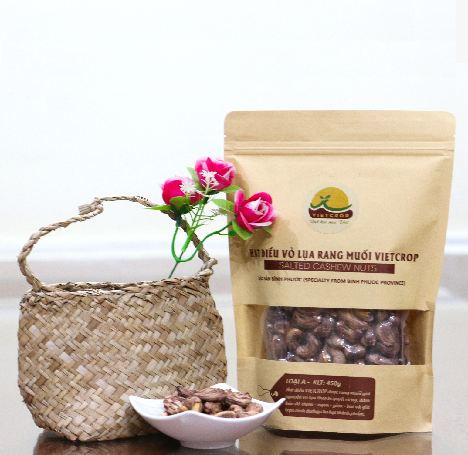 HẠT ĐIỀU VỎ LỤA RANG MUỐI VIETCROP 450GR