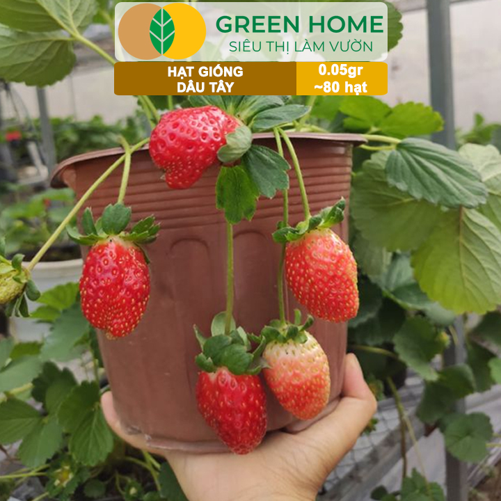 Hạt Giống Dâu Tây Đỏ Greenhome, Gói 0,05gr, Chịu Nhiệt, Quả To, Dễ Trồng, Năng Suất Cao T17