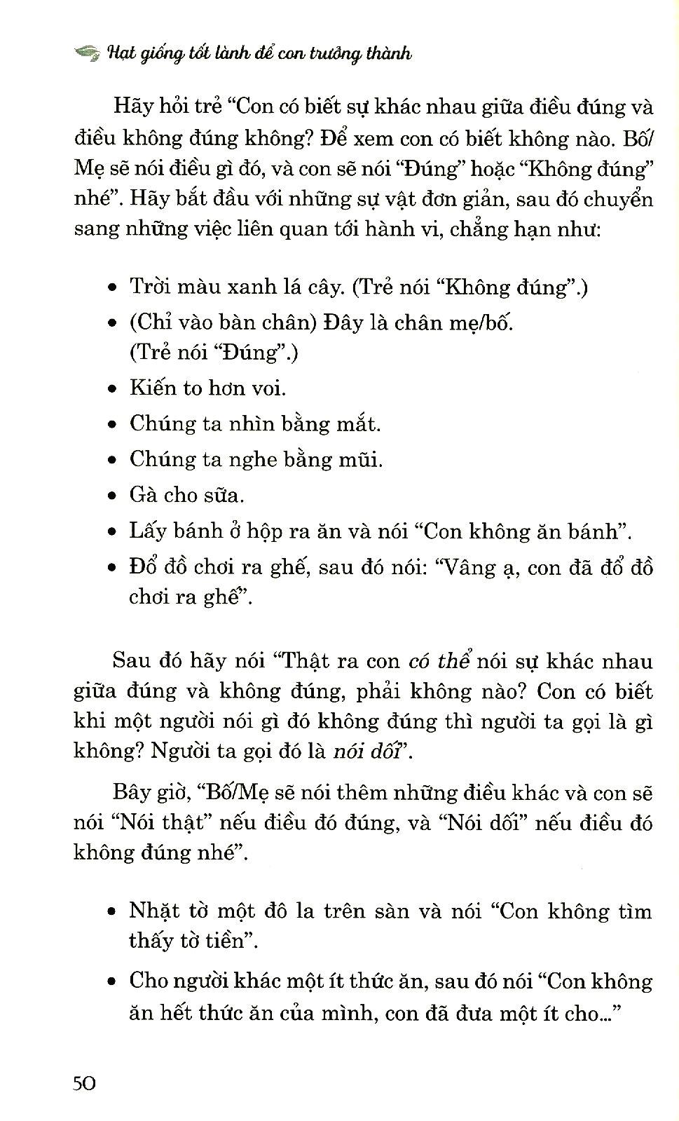 Cuốn sách nỗ lực giúp các bậc cha mẹ xác định hệ thống giá trị của mình và lựa chọn những “hạt giống tốt lành” nhất để gieo lên “mảnh đất” mới bồi trong lòng con cái. Hệ thống giá trị của bạn có thể rất giống - hoặc cũng có thể rất khác - với hệ thống giá trị trong cuốn sách, vì vốn dĩ trên đời này chẳng hề tồn tại hai hạt giống giống nhau hoàn toàn. Nhưng điều đó không thành vấn đề, bởi điều quan trọng nhất là bạn phải không ngừng phát triển nhóm giá trị riêng của gia đình mình và dạy lại những giá trị này cho con cái. Gia đình sẽ không bao giờ có thể bị thay thế bởi một thể chế, nơi mà những giá trị cơ bản được dạy và được học, giống như việc một hạt giống cây lê, lớn lên dù nó có nhiều – ít hay thậm chí chẳng có quả lê nào thì nó vẫn mãi mãi là cây lê, không khác được.