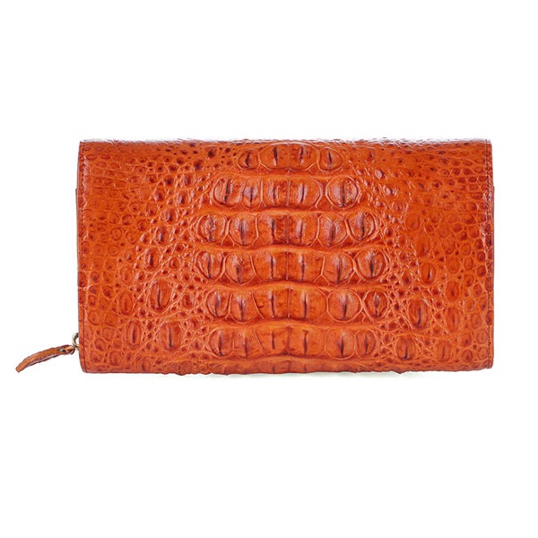 Ví/Bóp nữ da bò Huy Hoàng vân cá sấu lớn 3 gấp màu nâu đỏ 3154