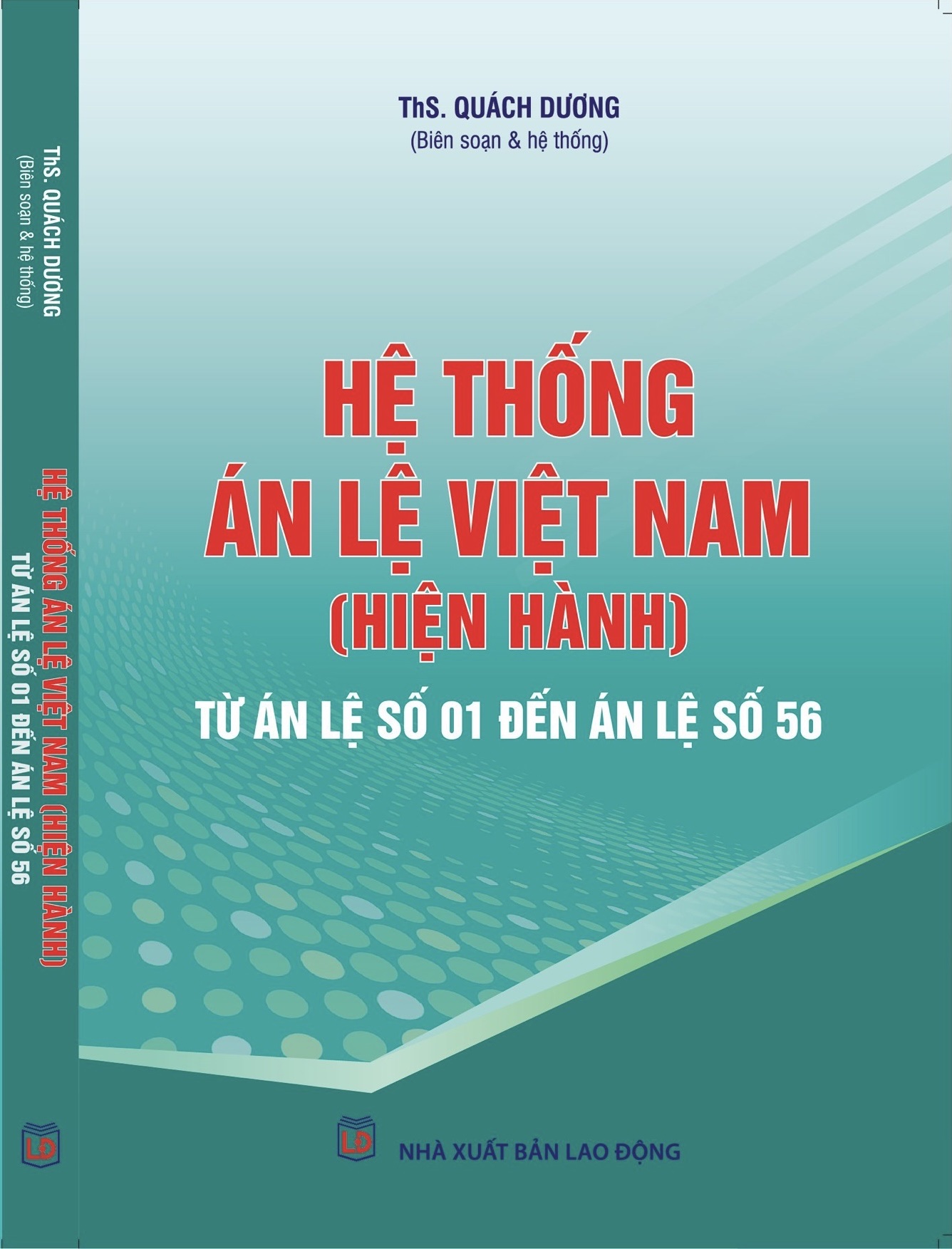 Để thuận tiện cho việc nghiên cứu, tìm hiểu, vận dụng án lệ trong quá trình thực hiện nhiệm vụ xét xử của Tòa án; giúp các cơ quan, tổ chức, cá nhân quan tâm tới hoạt động của Tòa án có thể tiếp cận với các án lệ đã ban hành; tạo nguồn tham khảo cho các hoạt động giảng dạy, nghiên cứu khoa học của các cơ quan, tổ chức, cá nhân, Nhà xuất bản Lao Động xuất bản và phát hành cuốn : “Hệ thống Án lệ Việt Nam - Hiện hành (Từ Án lệ số 01 đến Án lệ số 56”.