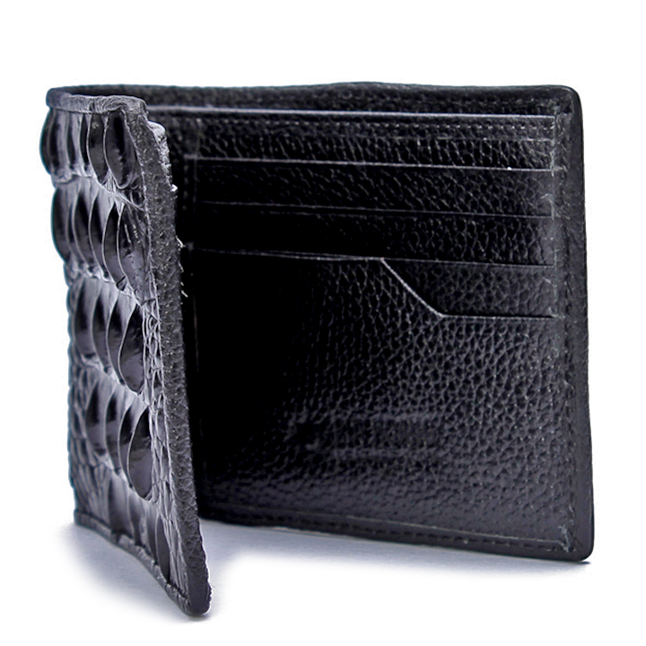 Ví/Bóp nam Huy Hoàng da bò vân cá sấu màu đen 2111