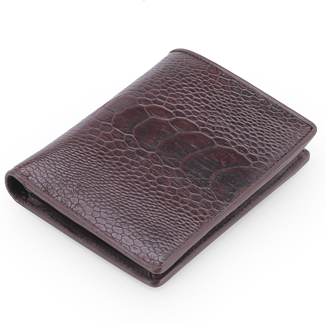 Bóp/Ví da đà điểu Huy Hoàng da bụng kiểu đứng màu nâu đất, nâu đỏ, đen, vàng bò 2408-09-10-18