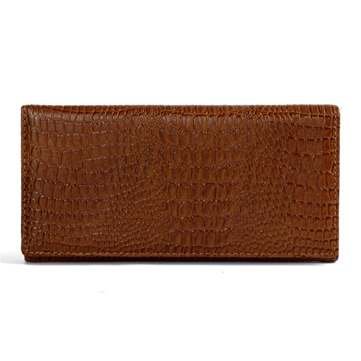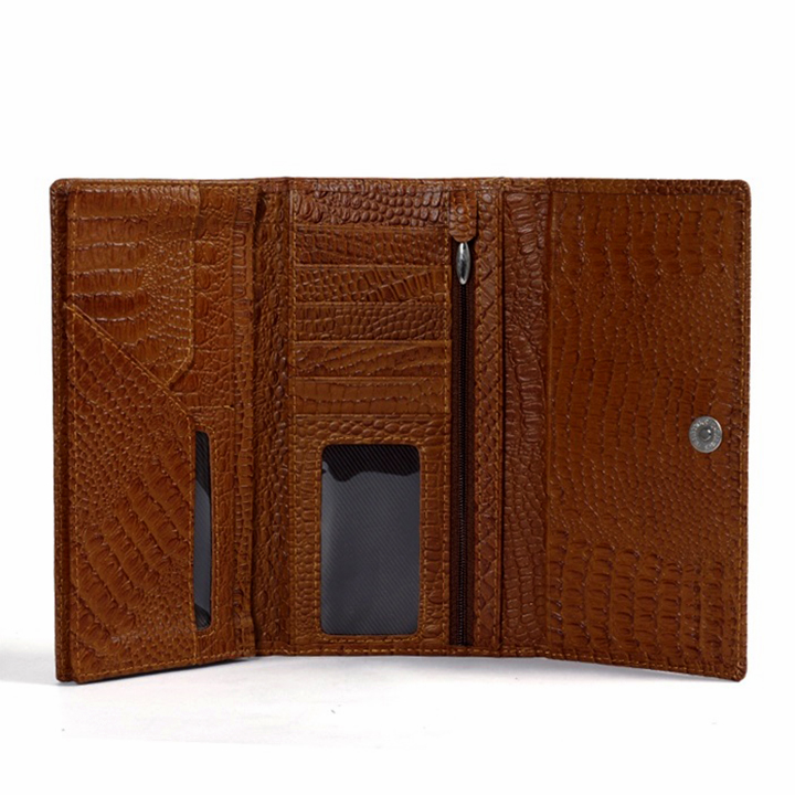 Ví/Bóp nữ da bò Huy Hoàng vân cá sấu lớn 3 gấp màu nâu đỏ 3154