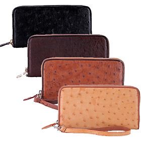 ✨HJ3429-30-31-32 - Bóp nữ da đà điểu 1 khóa Vip đen, nâu đỏ, vàng, nâu đất