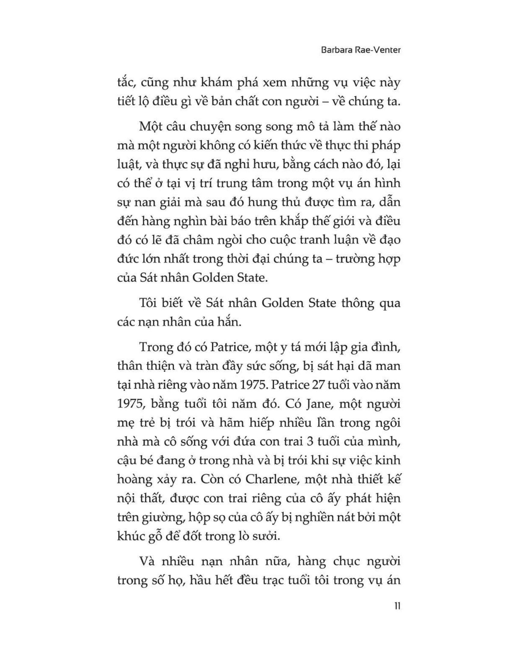 “Một kiệt tác tội phạm CÓ THẬT được viết bởi một bậc thầy phá án lạnh lùng. Công việc điều tra DNA của Barbara Rae-Venter đã cách mạng hóa cách thức cơ quan thực thi