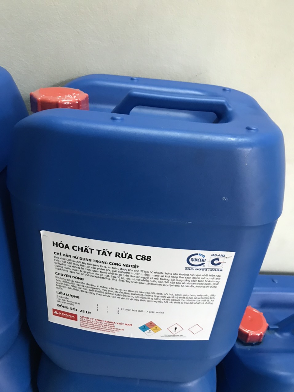 Hóa chất tẩy rửa C88 Nhà cung cấp: ADANA Vietnam Co., Ltd. Sản xuất : Việt Nam Quy cách : Can 25L Cân nặng: 30kg Bảo quản: 3 năm Công dụng của hóa chất tẩy
