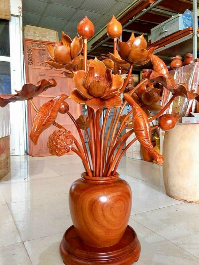 Mua một lần dùng mãi mãi chum hoa sen gỗ hương đỏ 17 cành cao 82 ngang 55 sâu 45 Zalo:0944616060
