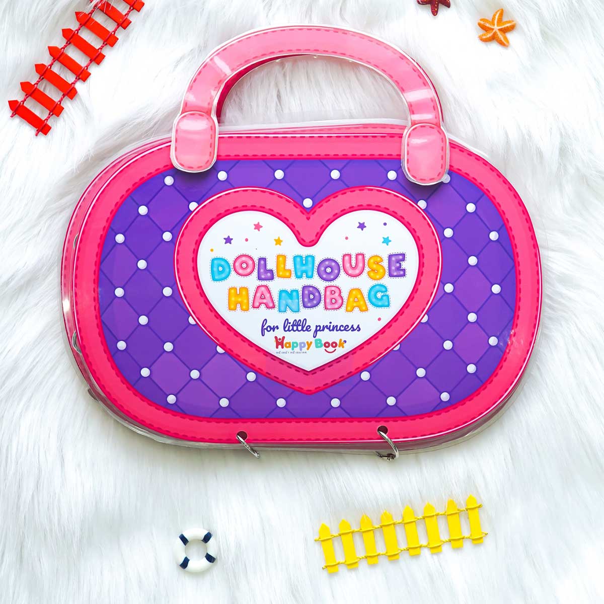 NGÔI NHÀ BÚP BÊ THIẾT KẾ DẠNG TÚI XÁCH Túi xách nội thất nhà búp bê màu hồng đáng yêu cho bé gái Nhựa: ABS an toàn cho bé - Túi xách nội thất nhà