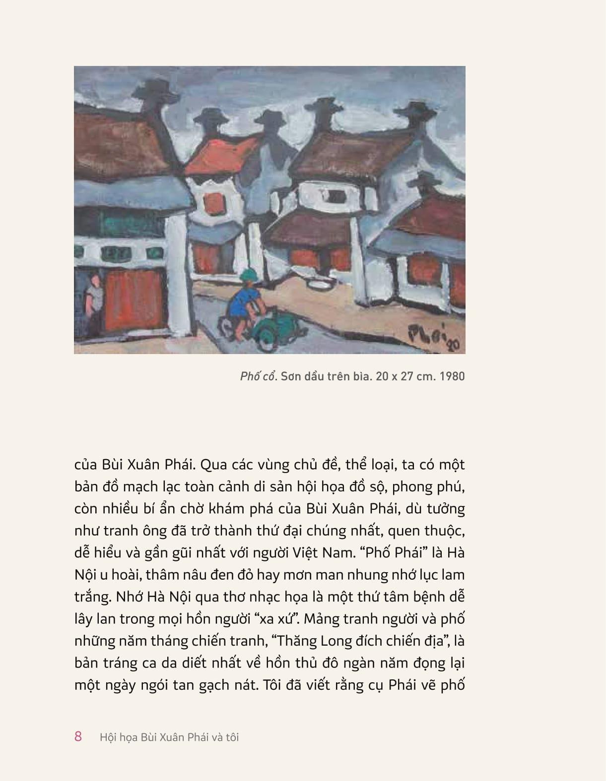 Mua tại TiktokTập tùy bút gồm 12 tùy bút in kèm tranh Bùì Xuân Phái của nhà sưu tập tranh Trần Hậu Tuấn. Trần Hậu Tuấn đưa ta vào một cuộc cuộc phiêu lưu tinh thần thuần túy, một cuộc hành hương qua một thiên nhiên nghệ thuật, môi cảnh tâm hồn của Bùi Xuấn Phái. Qua các vùng chủ đề, thể loại, ta có một bản độ mạch lạc toàn cảnh di sản hội họa đồ sộ, phong phú, còn nhiều bí ẩn chờ khám phá của Bùi Xuân Phái, dù tưởng như tranh ông đã trở thành thứ đại chúng nhất, quen thuộc, dễ hiểu và gần gũi nhất với người Việt Nam.