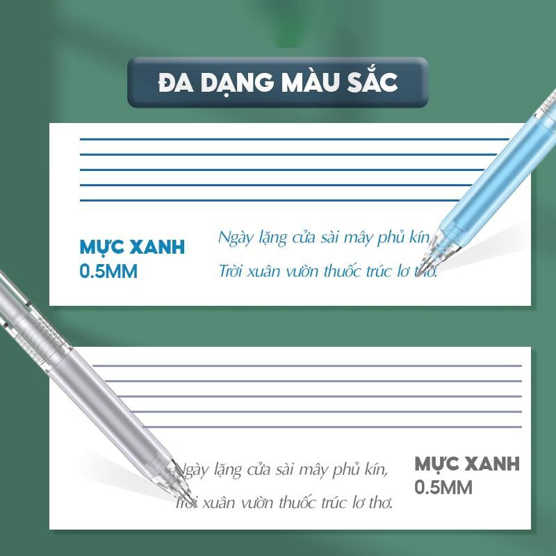 Mực gel siêu trơn: Bút được trang bị mực gel chất lượng cao, đảm bảo viết mượt mà, không bị tắc nghẽn, giúp bạn dễ dàng ghi chú hoặc viết lách mà không gặp khó