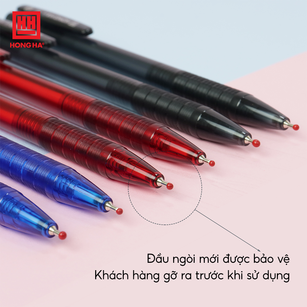 - Đặc điểm sản phẩm Bút bi 0.5mm Hồng Hà 2461 Bút bi 0.5mm Hồng Hà 2461 được người tiêu dùng ưa chuộng bởi các đặc điểm nổi bật như: Thiết kế: Đầu bi 0.5mm xuất xứ Thụy Sỹ cho nét viết thanh mảnh, siêu êm. Mực bi được nhập khẩu từ Ấn Độ, có màu sắc tươi sáng, viết trơn, ra đều và liên tục. Chất liệu: Thân bút được làm từ nhựa cao cấp, cho màu sắc tươi sáng hơn và đảm bảo độ bền của thân bút. Tay cầm được thiết kế gân tròn, giảm trơn trượt khi viết. Độ dài viết: Độ dài viết tối đa lên đến 1000m. Nhờ vậy, bút có thể sử dụng lâu dài, giúp người dùng tiết kiệm tối đa chi phí.